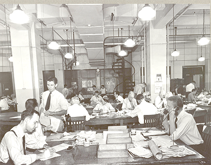 A copy desk at the NY Times in 1942. Despite the lack of desktop computers, it looks a lot like the ones where the author worked at the Associated Press, the Charleston SC Courier and Baltimore MD Sun in the 1980s and 90s.  (Library of Congress).
